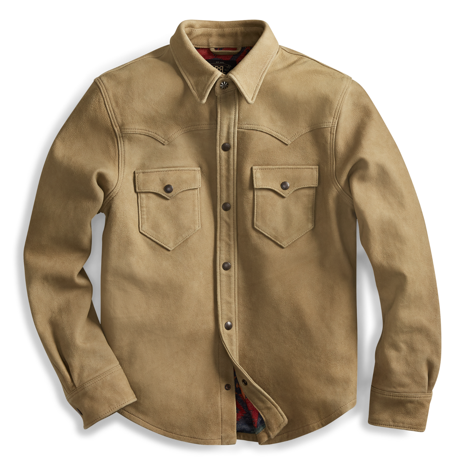 RRL Ralph Lauren Tan Waxed Suede Sheepskin Western Leather Jacket Men's Small S
