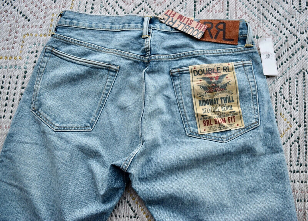 $450 RRL Double RL Light Wash Denim Jeans USA Made Relax Fitting Denim 33x32