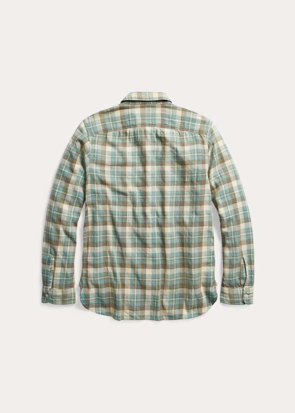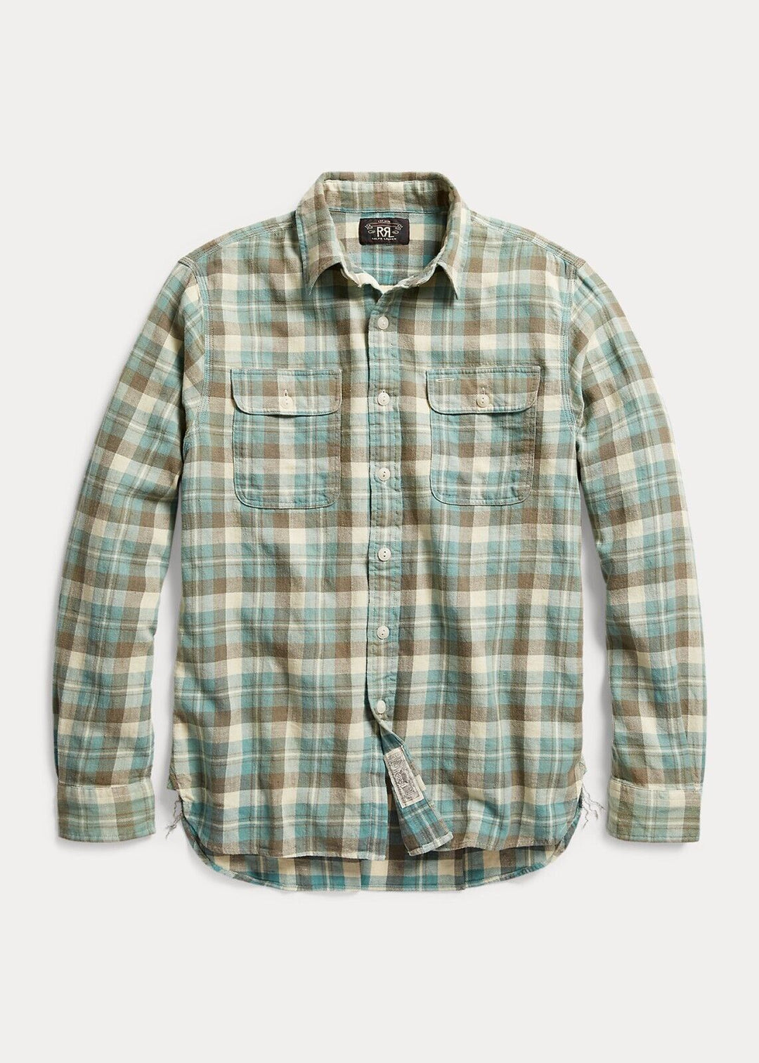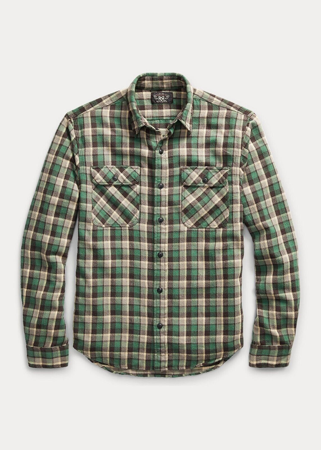 2017 RRL Cotton Shirt Work Green Shirt *Defects Plaid Check Men's Large L