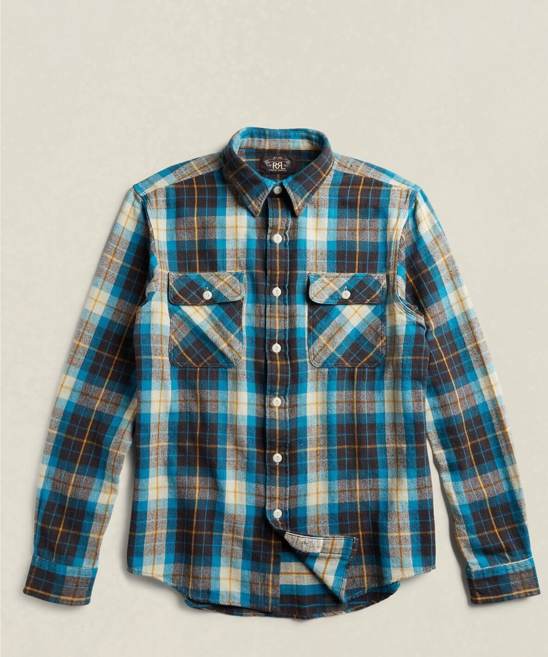 2016 RRL Plaid Matlock Twill Workshirt Navy Plaid Shirt *Defects Men's Large L