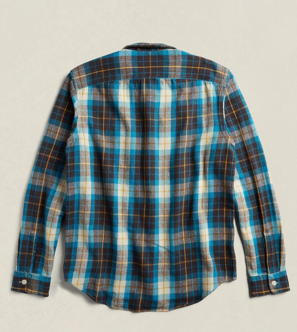 2017 RRL Plaid Check Cotton Workshirt Blue Green Shirt *Defects Men's Medium M