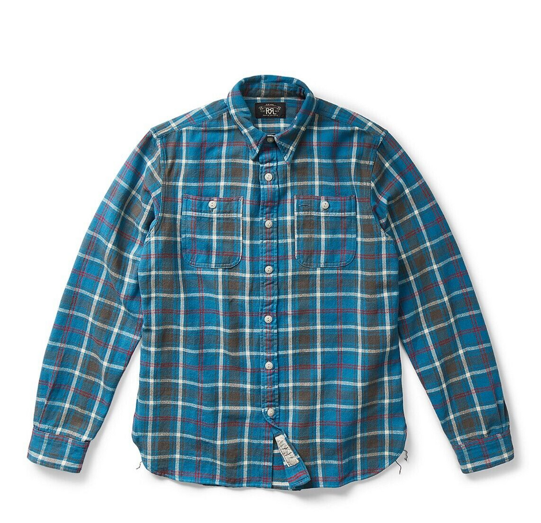 2016 RRL Plaid Matlock Twill Workshirt Blue Check Shirt *Defects Men's Large L