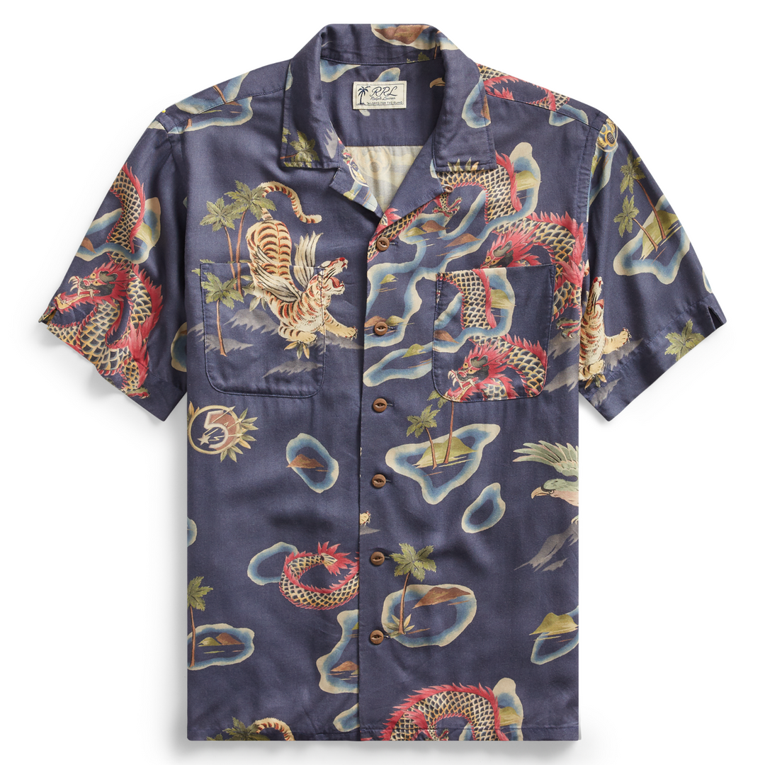RRL Ralph Lauren Hawaiian Beach Navy Blue Print Shirt Men's Extra-Small XS Camp