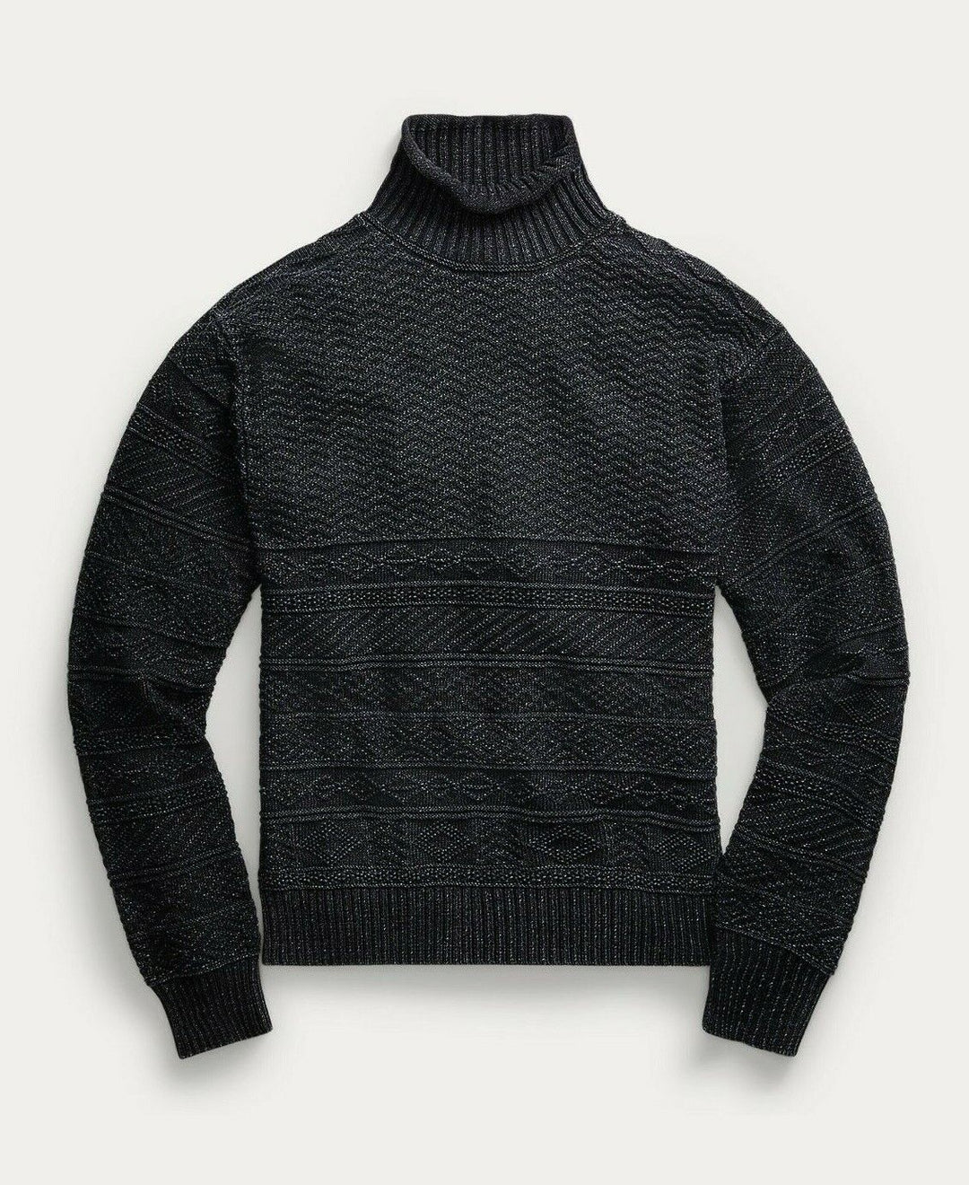 RRL Ralph Lauren Indigo Blue Fair Isle Cable-Knit Turtleneck Men's L Large