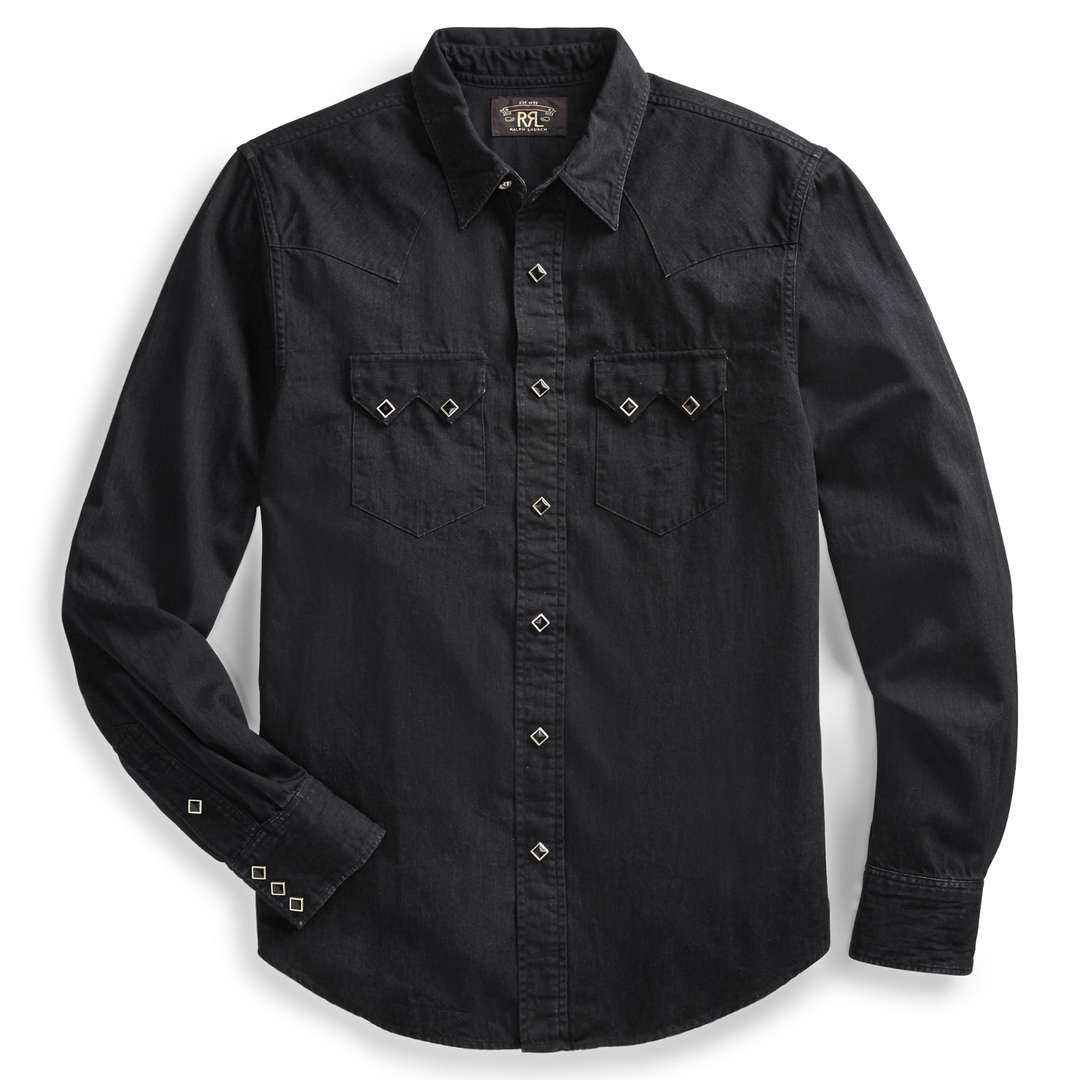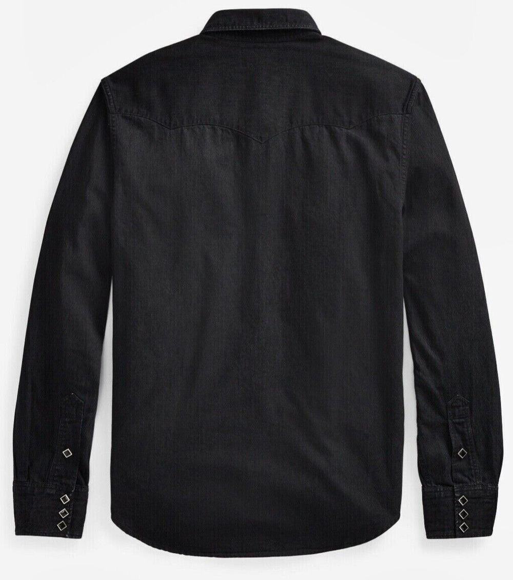 RRL Ralph Lauren Japanese Denim Western Slim Fit Black Shirt Snap Men Medium M
