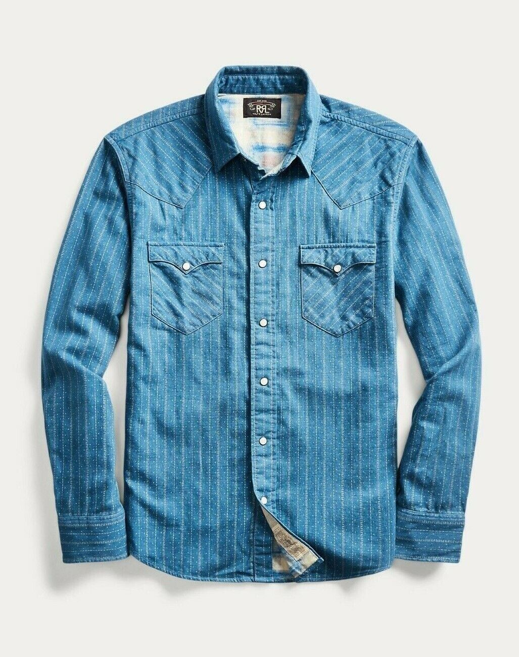 RRL Ralph Lauren Lined Blue Striped Yoke Western Shirt Men's XL Extra-Large