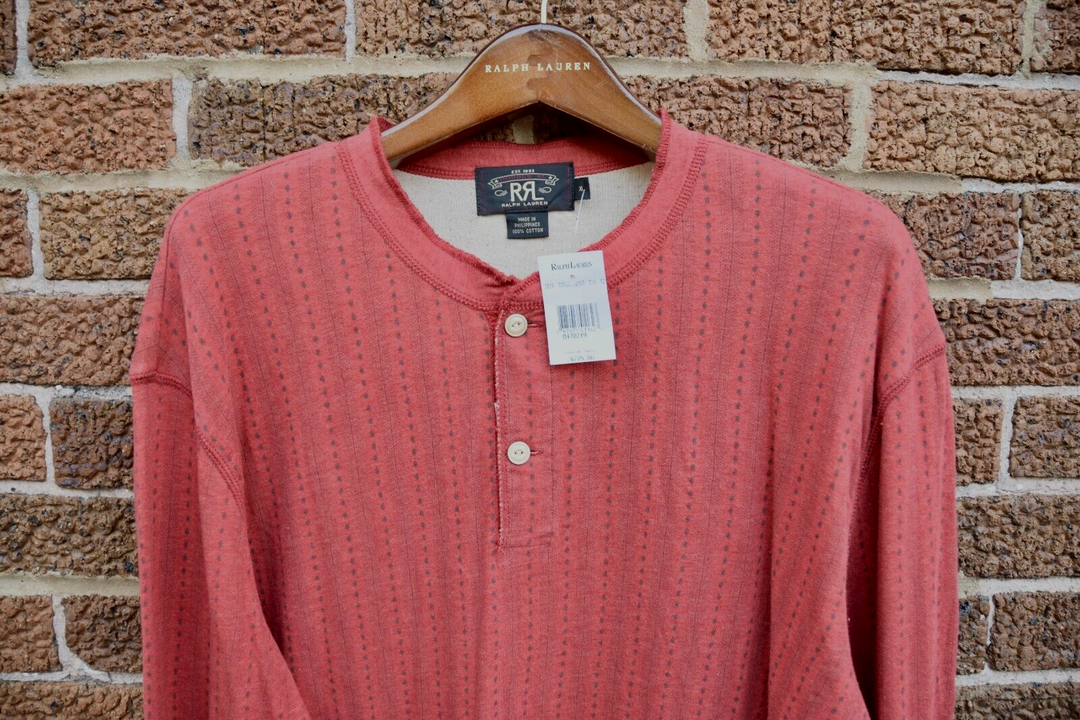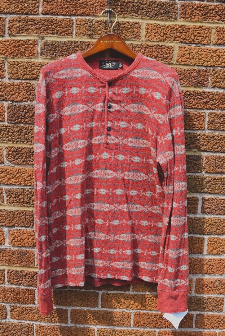 RRL Ralph Lauren Red Henley Fleece Shirt Southwestern Lined Men's Extra-Large XL