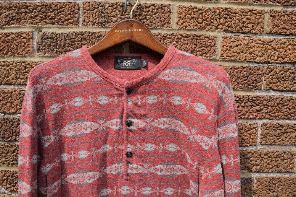 RRL Ralph Lauren Red Henley Fleece Shirt Southwestern Aztec Men's Medium M
