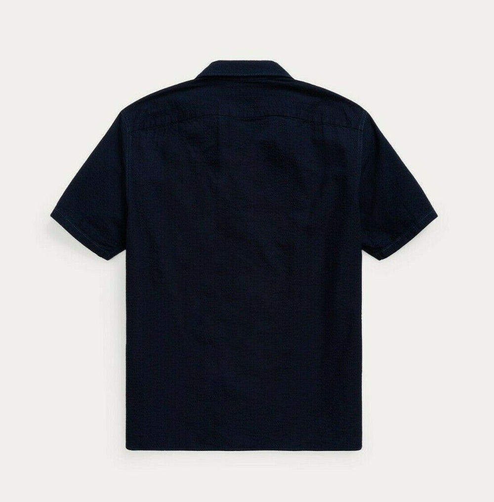RRL Ralph Lauren Seersucker Indigo Navy Solid Button Shirt Men's Small S Camp