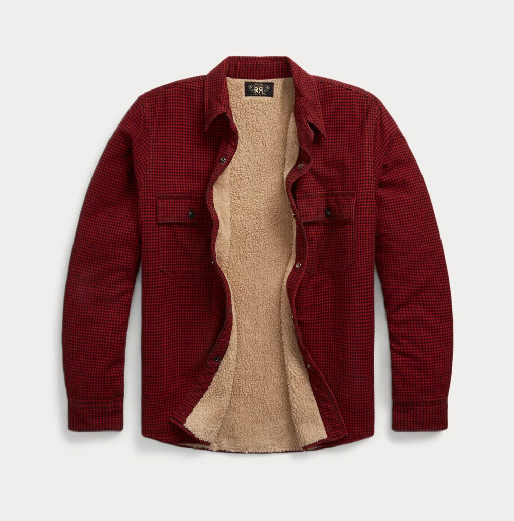 RRL Ralph Lauren Red Check Shirt Jacket Lined Checkered Overshirt Men's Large L