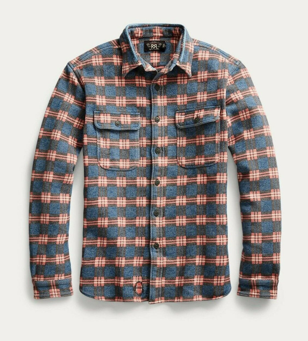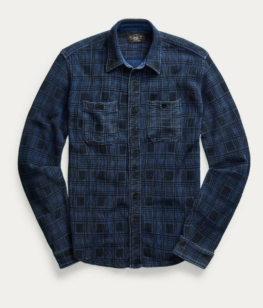 RRL Ralph Lauren Rotary Ottoman Check Plaid Blue Indigo Workshirt Men's L Large