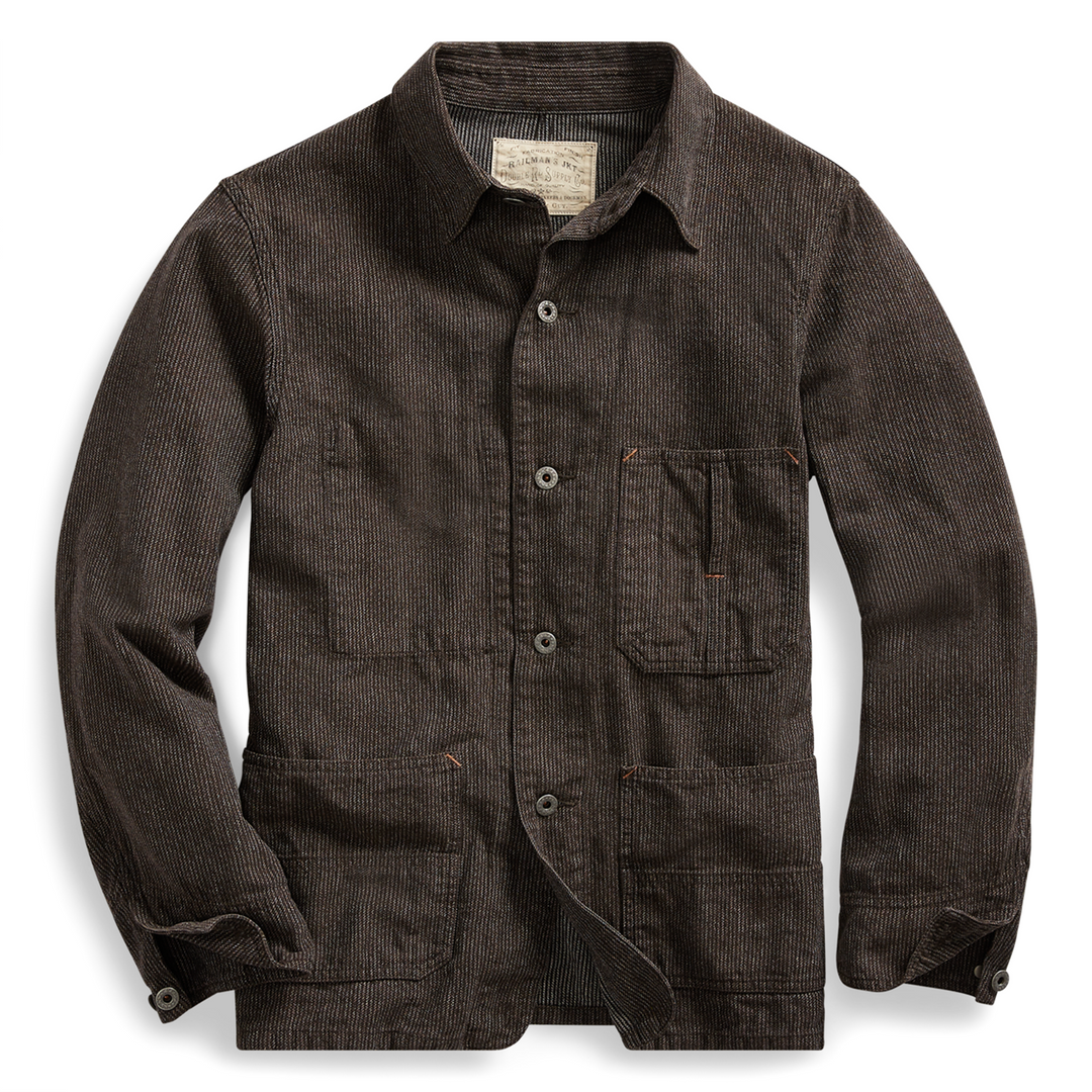 RRL Ralph Lauren Striped Twill Coat Cotton Work Jacket Shirt Men's XXL 2XL