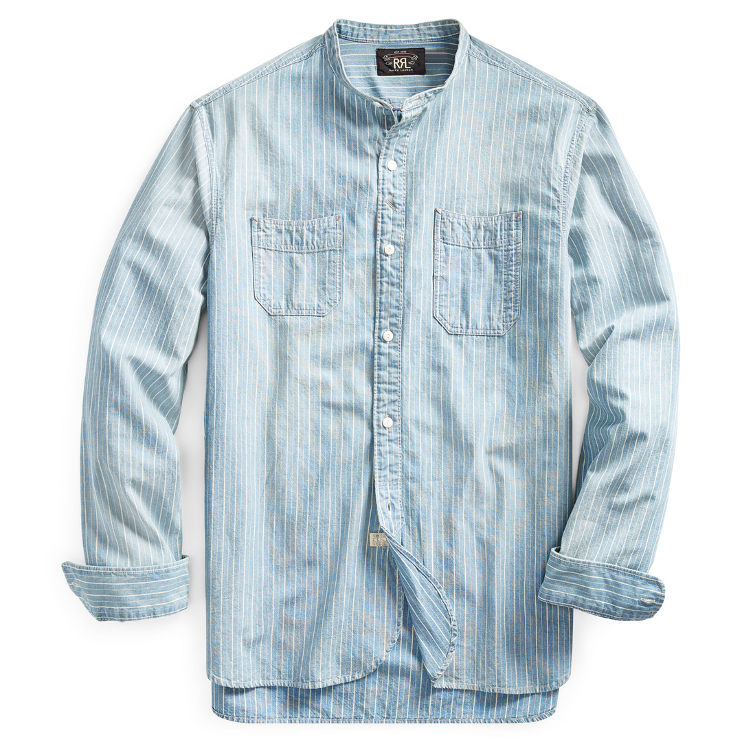 RRL Ralph Lauren Striped Band Collar Jack Rabbit Work Shirt Men's Medium M