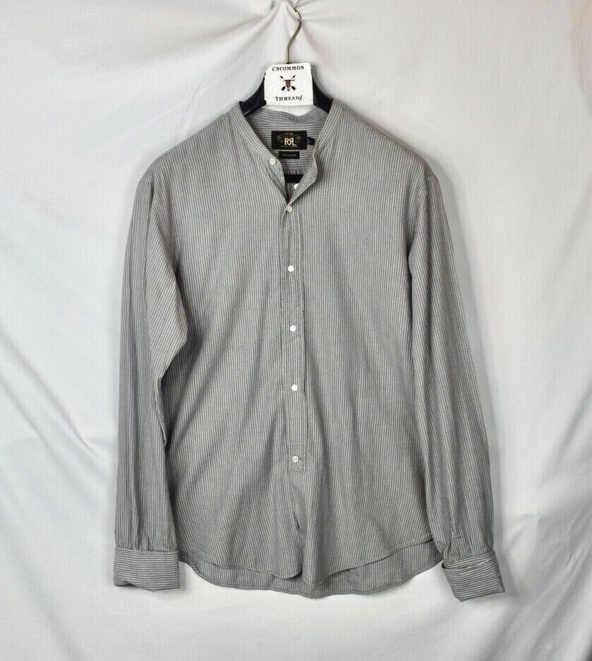 RRL Ralph Lauren Striped Band Collar Button Dress Gray Work Shirt Men's Large L