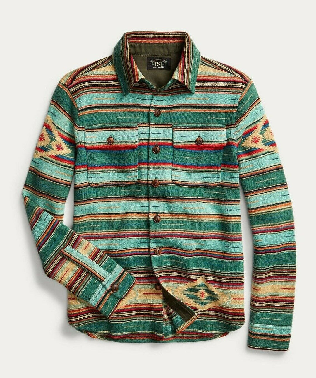 RRL Ralph Lauren Striped Serape Southwestern Striped Shirt Green Men's M Medium