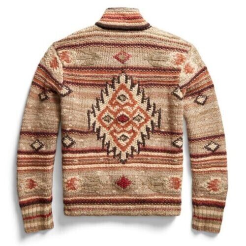 RRL Ralph Lauren Southwestern Wool Linen Blend Hand Knit Cardigan Men's Medium M