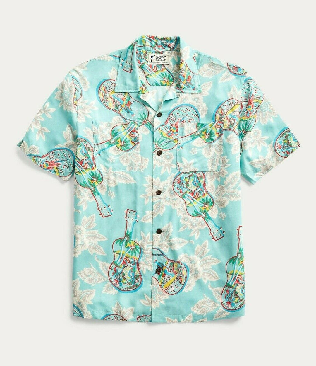 RRL Ralph Lauren Tropical Print Hawaiian Camp Shirt Men's Medium M Hand Painted