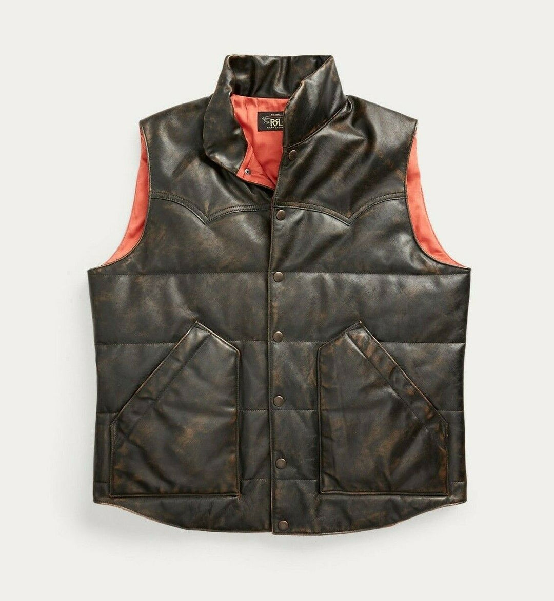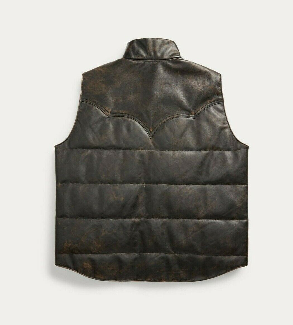RRL Ralph Lauren Suede-Yoke Quilted Down Vest Jacket Coat Puffer Men's M Medium