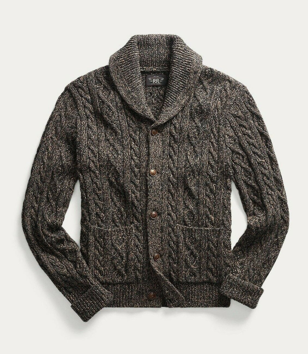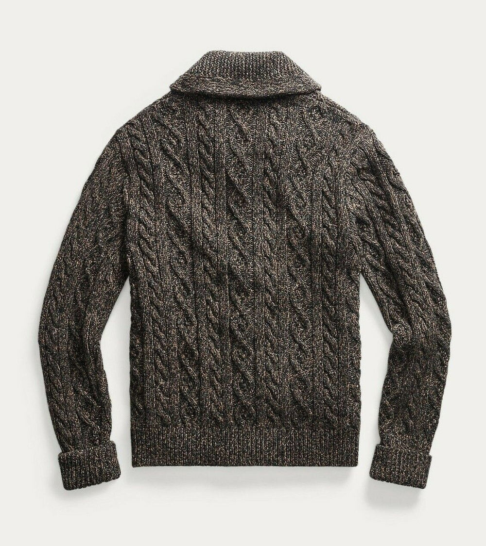 RRL Ralph Lauren Thick Marled Shawl Aran-Knit Brown Cardigan Men's S Small