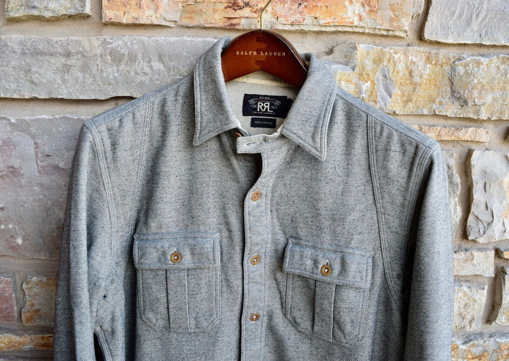 RRL Ralph Lauren Taupe Gray Solid 1920's Shirt Flannel Workshirt Men's Medium M