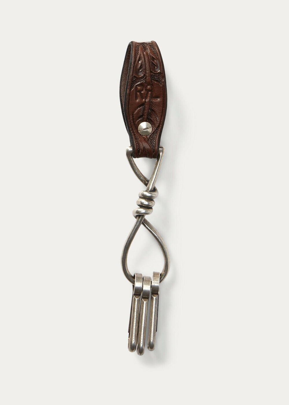 RRL Ralph Lauren Tooled Leather Cowhide Sterling Silver Key Fob Brown Keychain