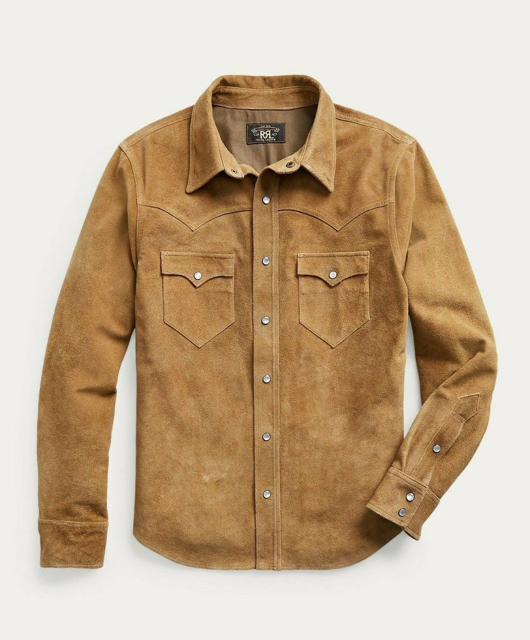 RRL Ralph Lauren Tan Suede Western Leather Jacket Overshirt Men's Large L