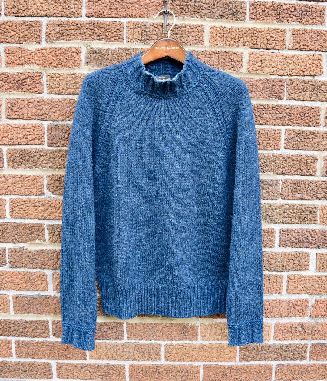 RRL Ralph Lauren Vintage Thick Pullover Wool Blue Navy Mockneck Men's Small S
