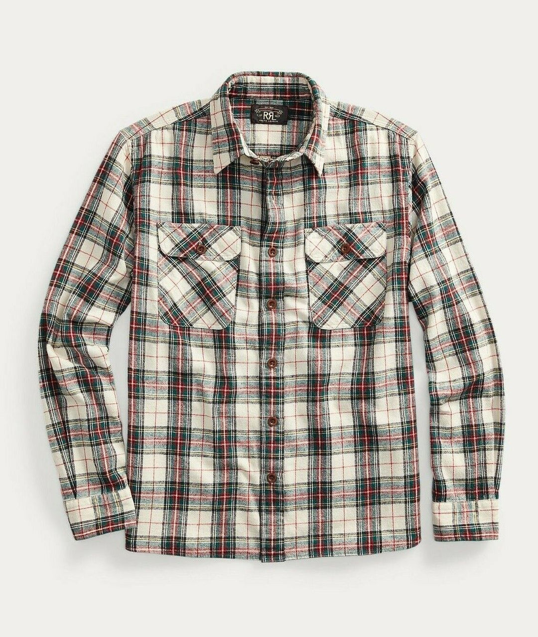 RRL Ralph Lauren Vintage Plaid Cotton Red Green White Workshirt Men's S Small