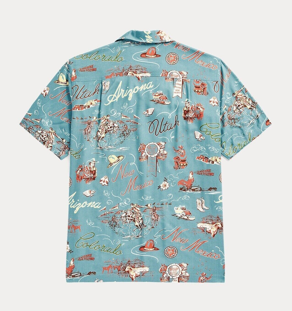 RRL Ralph Lauren Western Print Camp Blue Rodeo Shirt S/S Men's Extra-Large XL