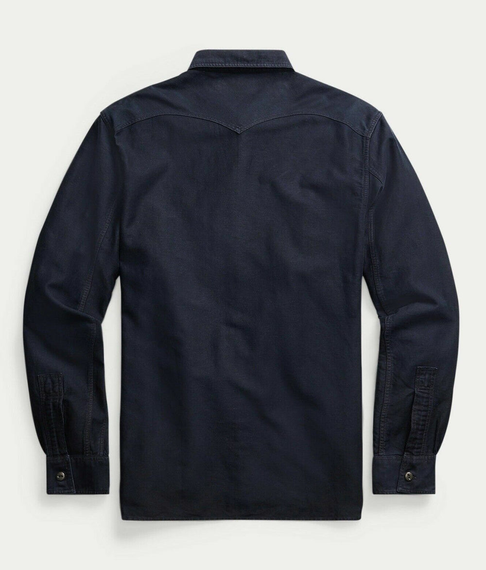 RRL Ralph Lauren Vintage Sateen Fit Cotton Navy Work Shirt Men's XS Extra-Small