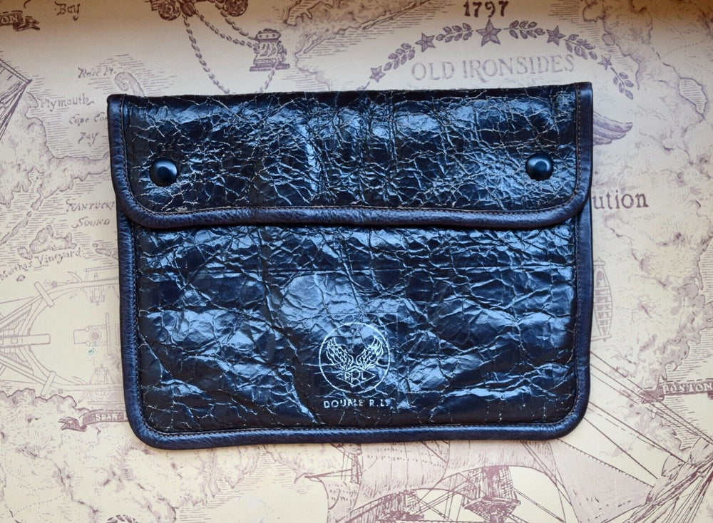 RRL Ralph Lauren Vintage Military Italian Shearling Cracked Leather Media Case
