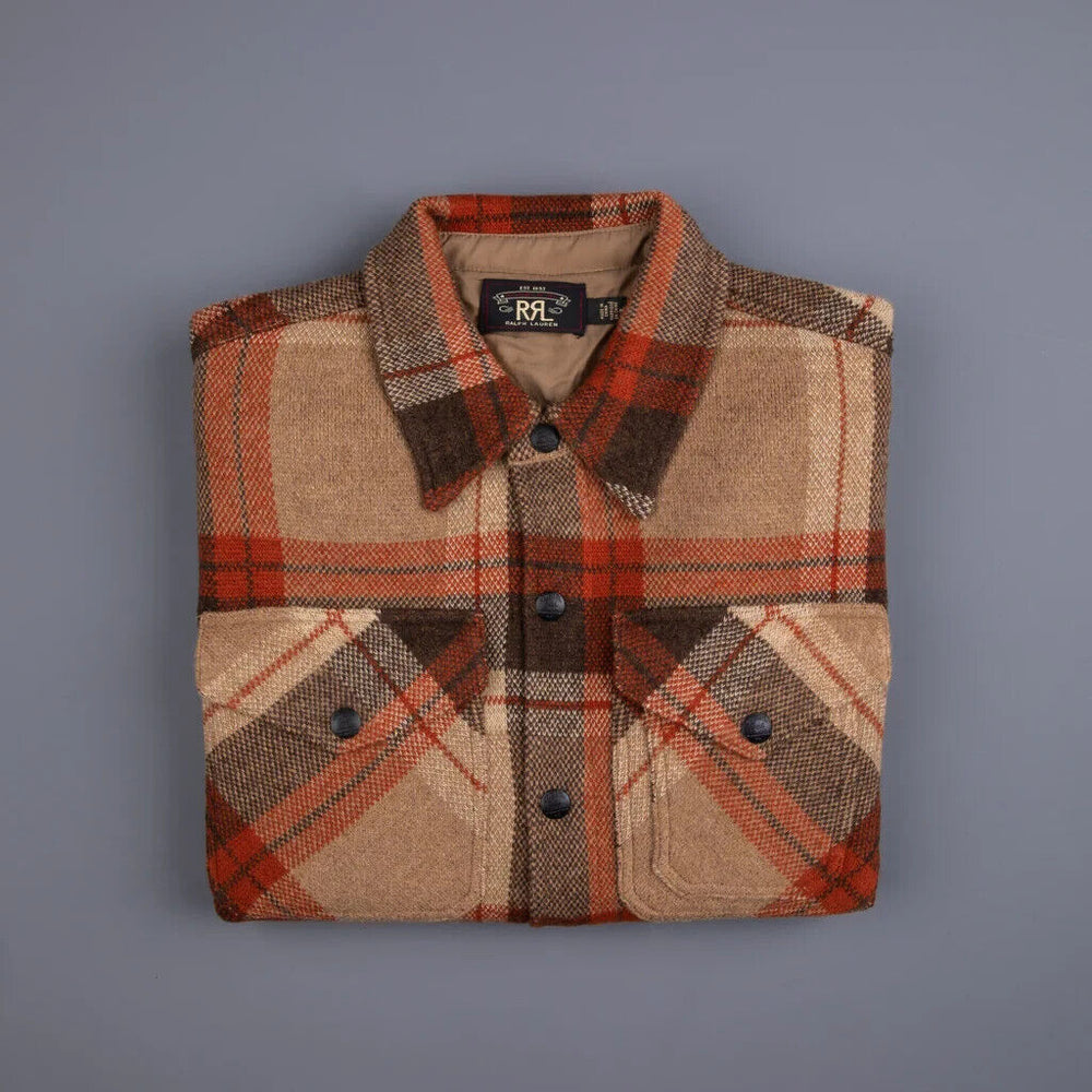 RRL Ralph Lauren Wool Cashmere Brown White Plaid Workshirt Jacket Men's Small S