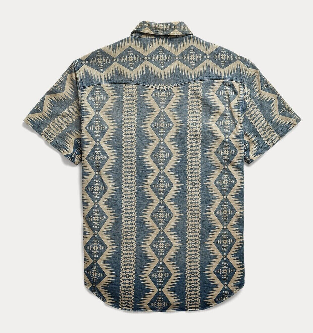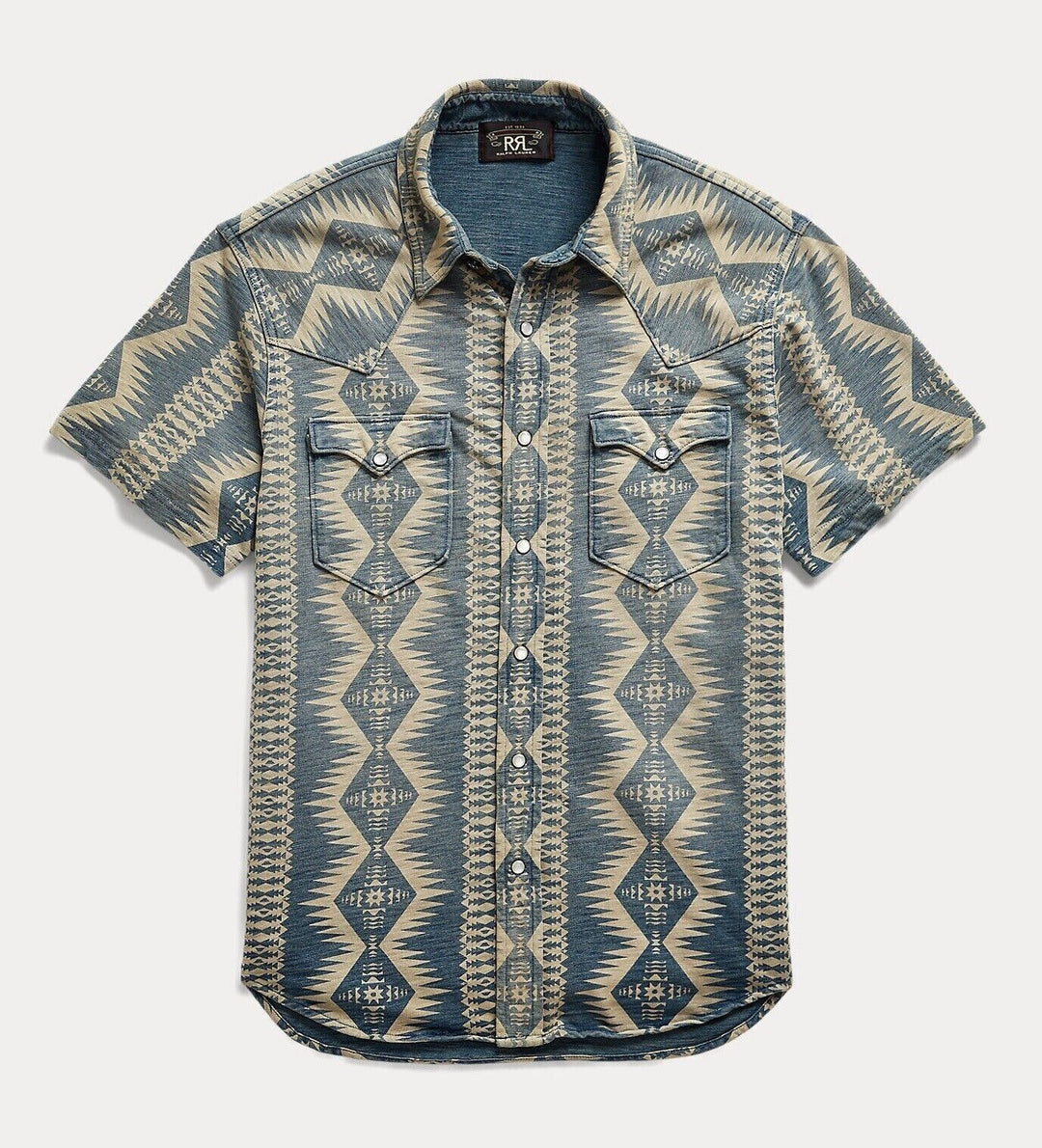 RRL Ralph Lauren Western Snap Southwestern S/S Jersey Shirt Men's Medium M