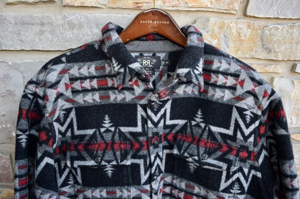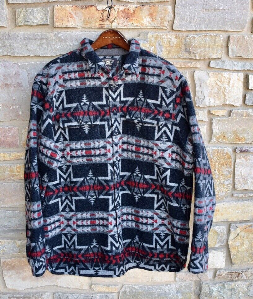 RRL Ralph Lauren Wool Black Southwestern Work Shirt Jacket Mens XXL 2XL