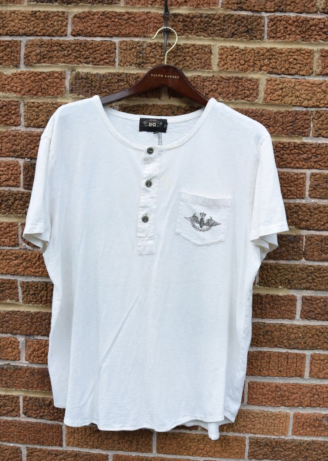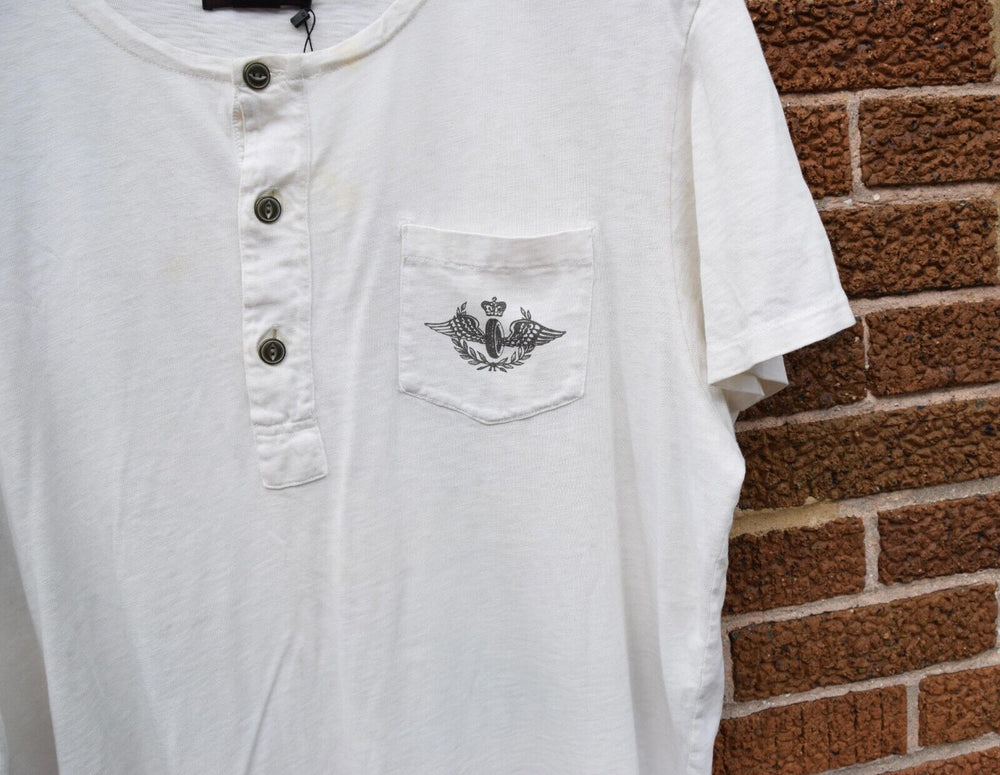 RRL Ralph Lauren White Solid Henley Cotton Henley T-Shirt Pocket Extra-Large XL