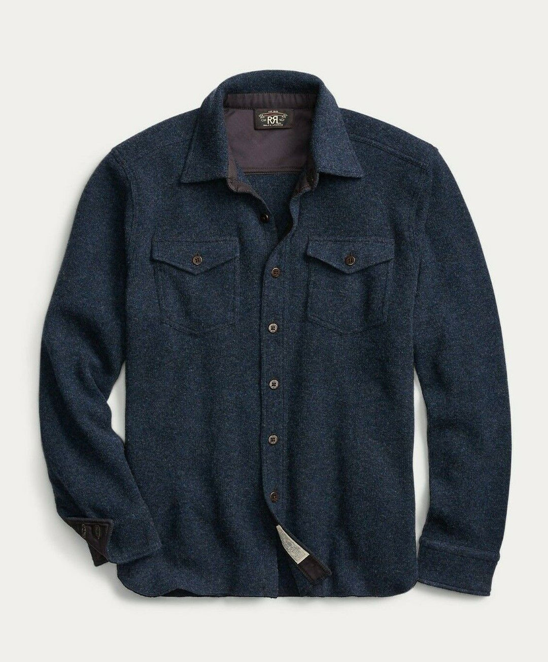 RRL Ralph Lauren Wool Cashmere Navy Blue Naval Shirt Sweater Mens Extra-Large XL