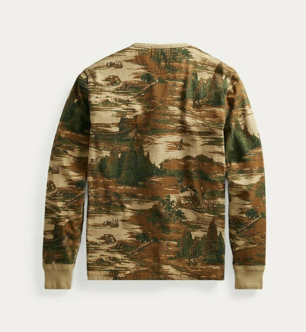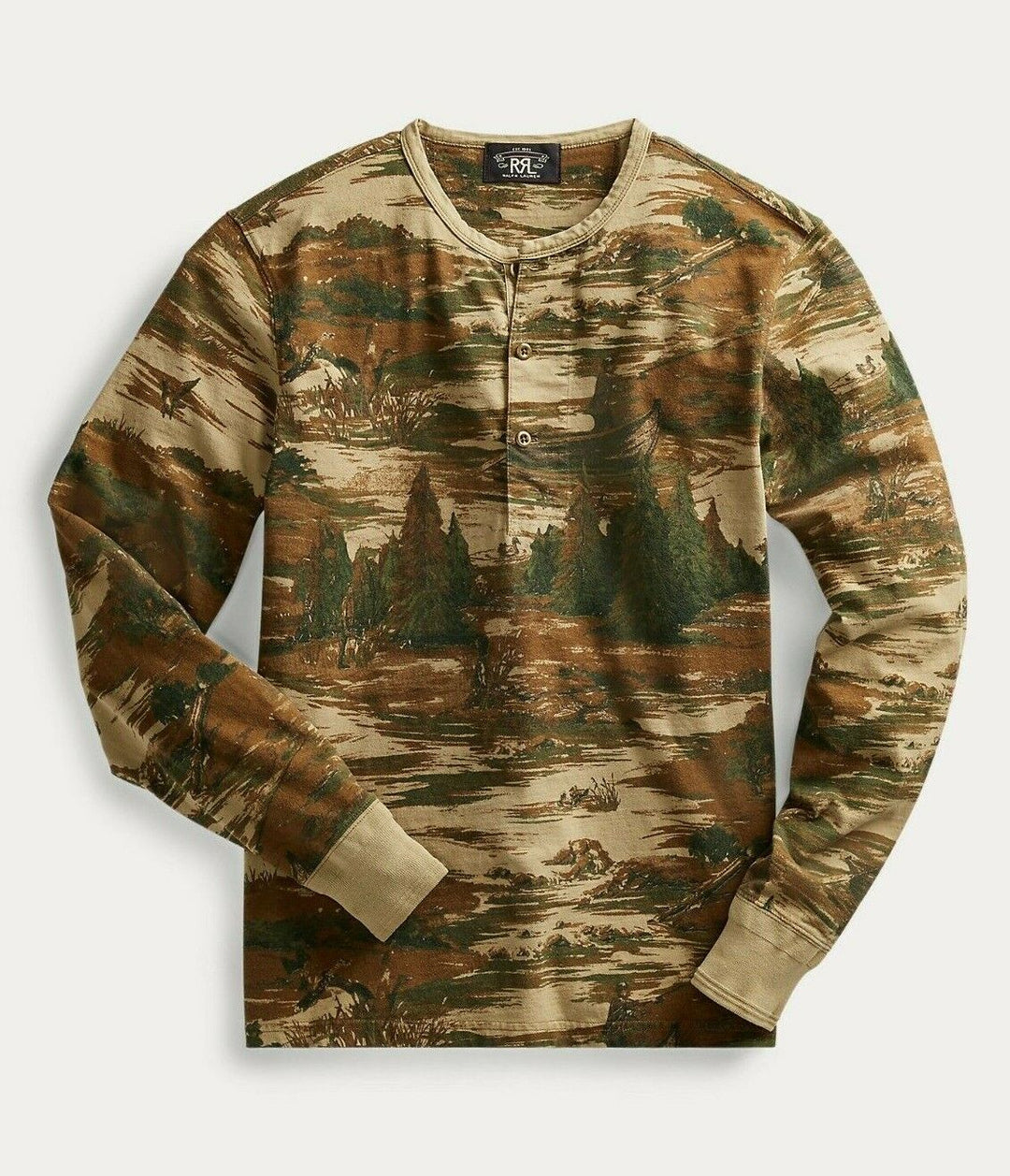 RRL Ralph Lauren Wetlands Cotton Jersey Henley Brown Green Shirt Men's 2XL XXL