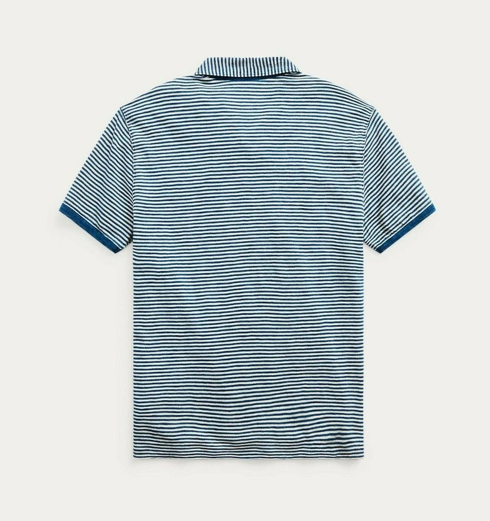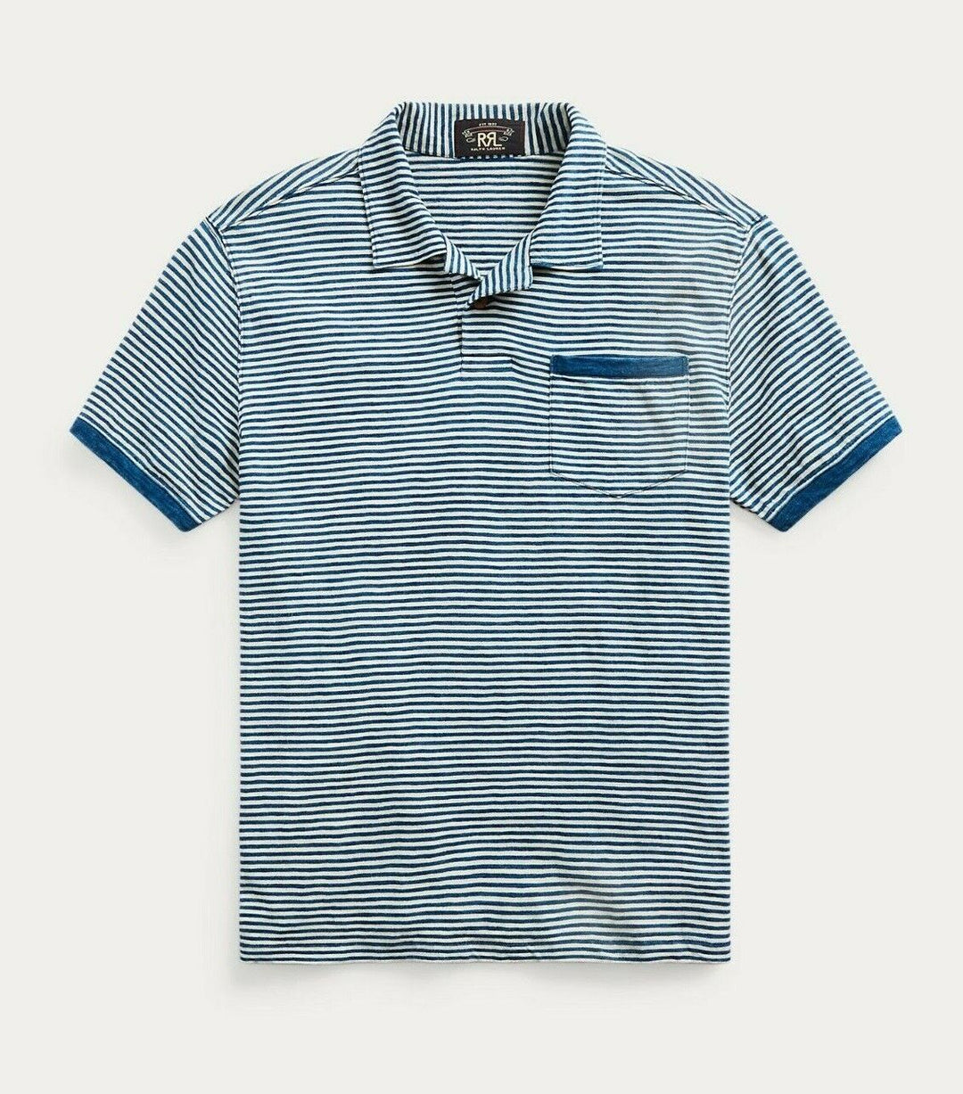 RRL Ralph Lauren White Indigo Striped Pinstripe Cotton Polo Jersey Men's Small S