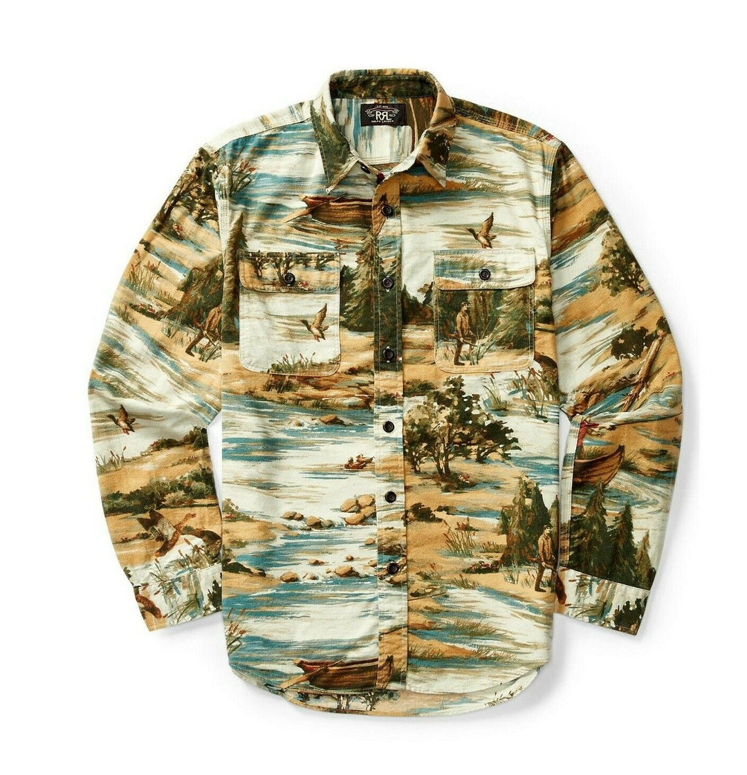 RRL Ralph Lauren Wetland Scene Chamois Flannel Shirt Workshirt Men's 2XL XXL