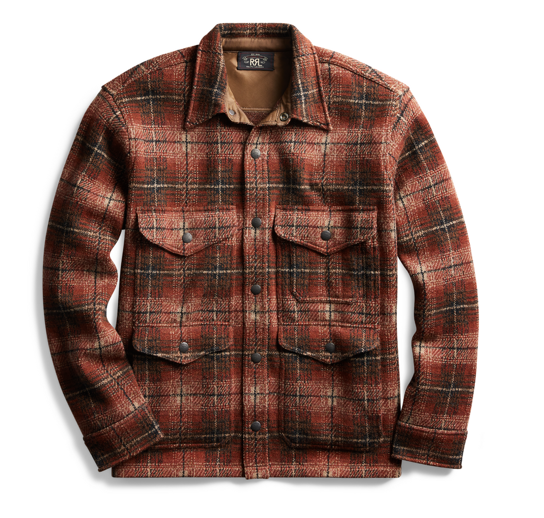 RRL Ralph Lauren Wool Cashmere Blend Plaid Red Overshirt Jacket Men's Medium M