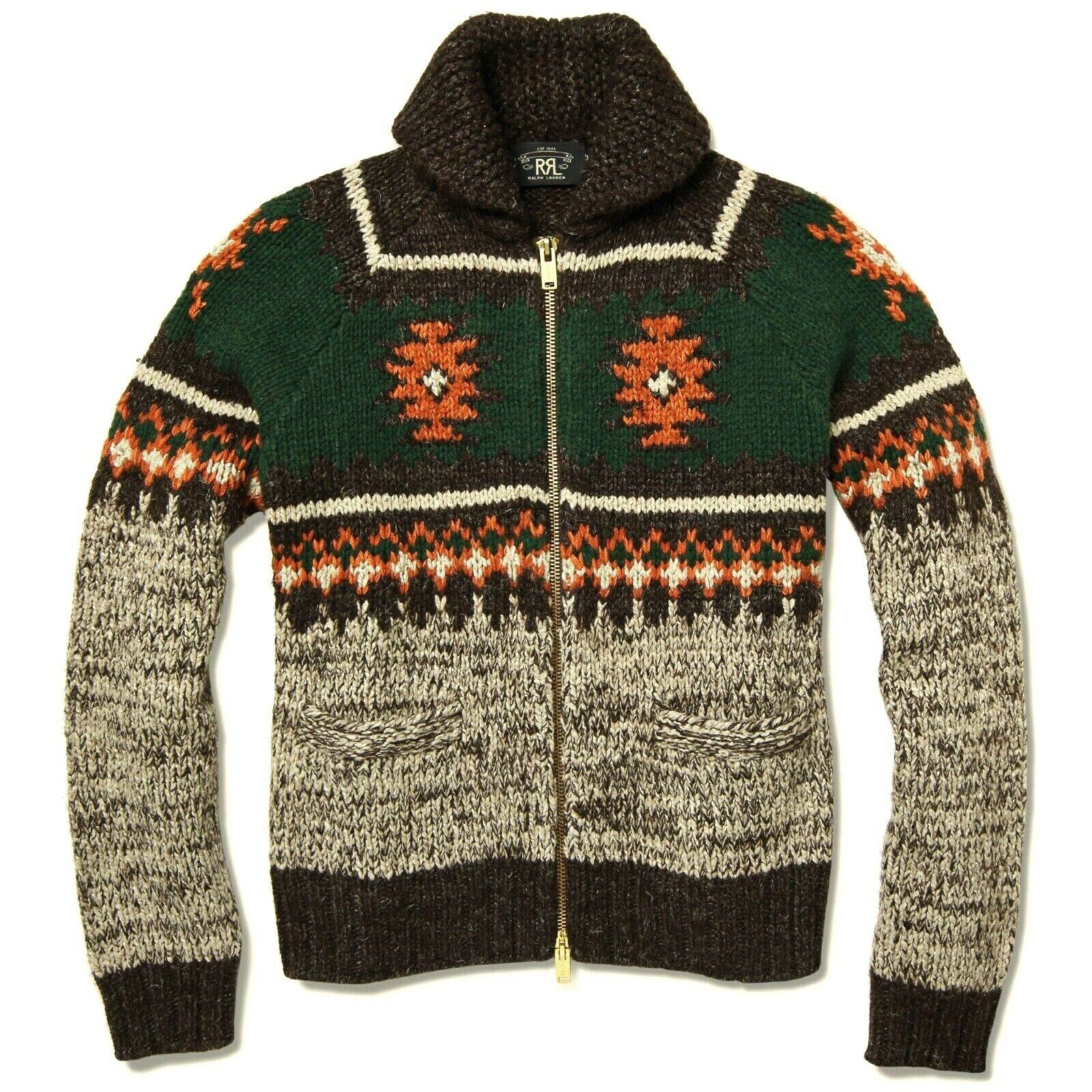 New RRL Ralph Lauren Brown Jacquard Knit Shawl Cardigan Sweater Men's Medium M