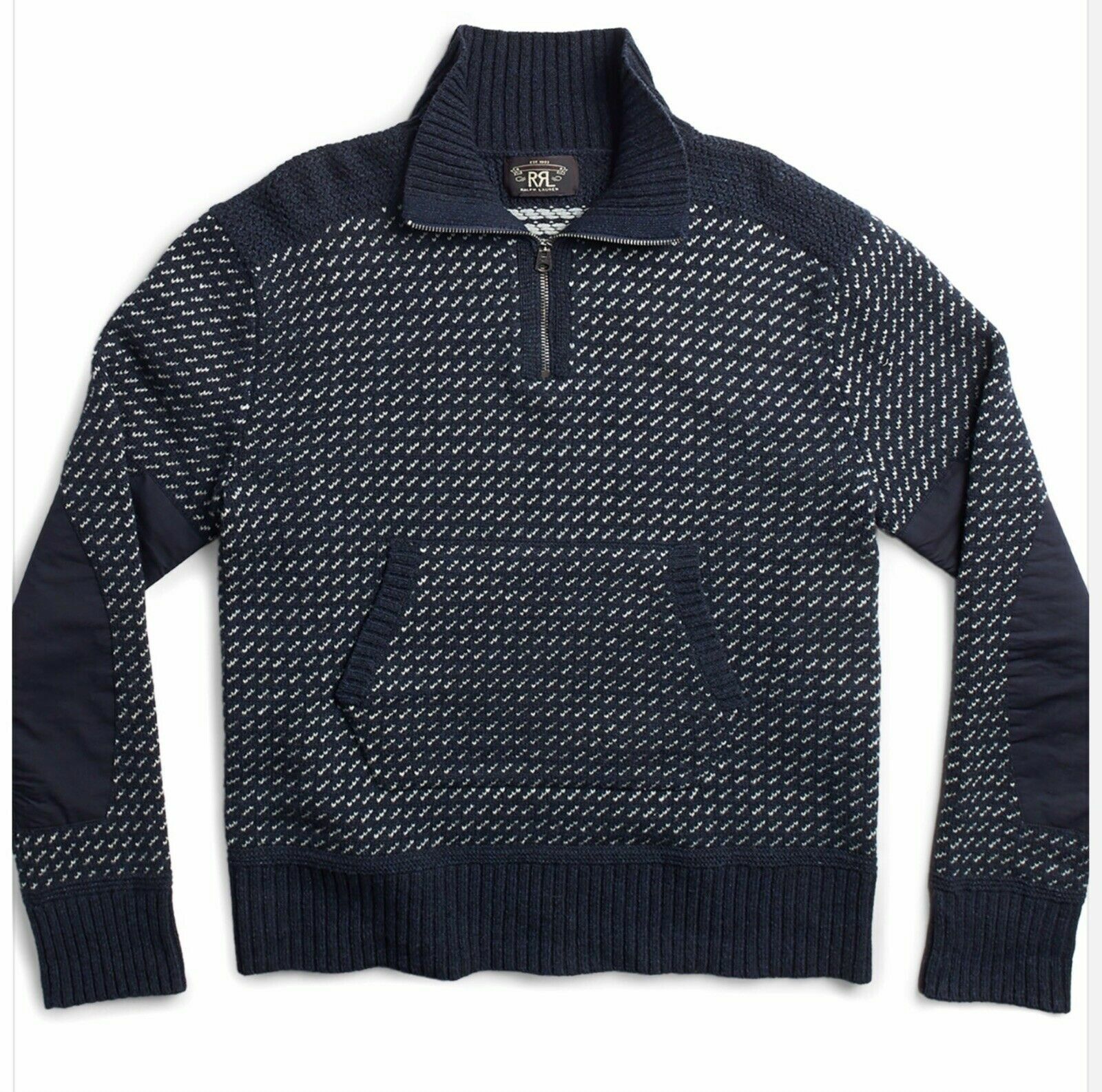 New RRL Ralph Lauren Military Indigo Wool Pullover Sweater Men's XL Extra-Large