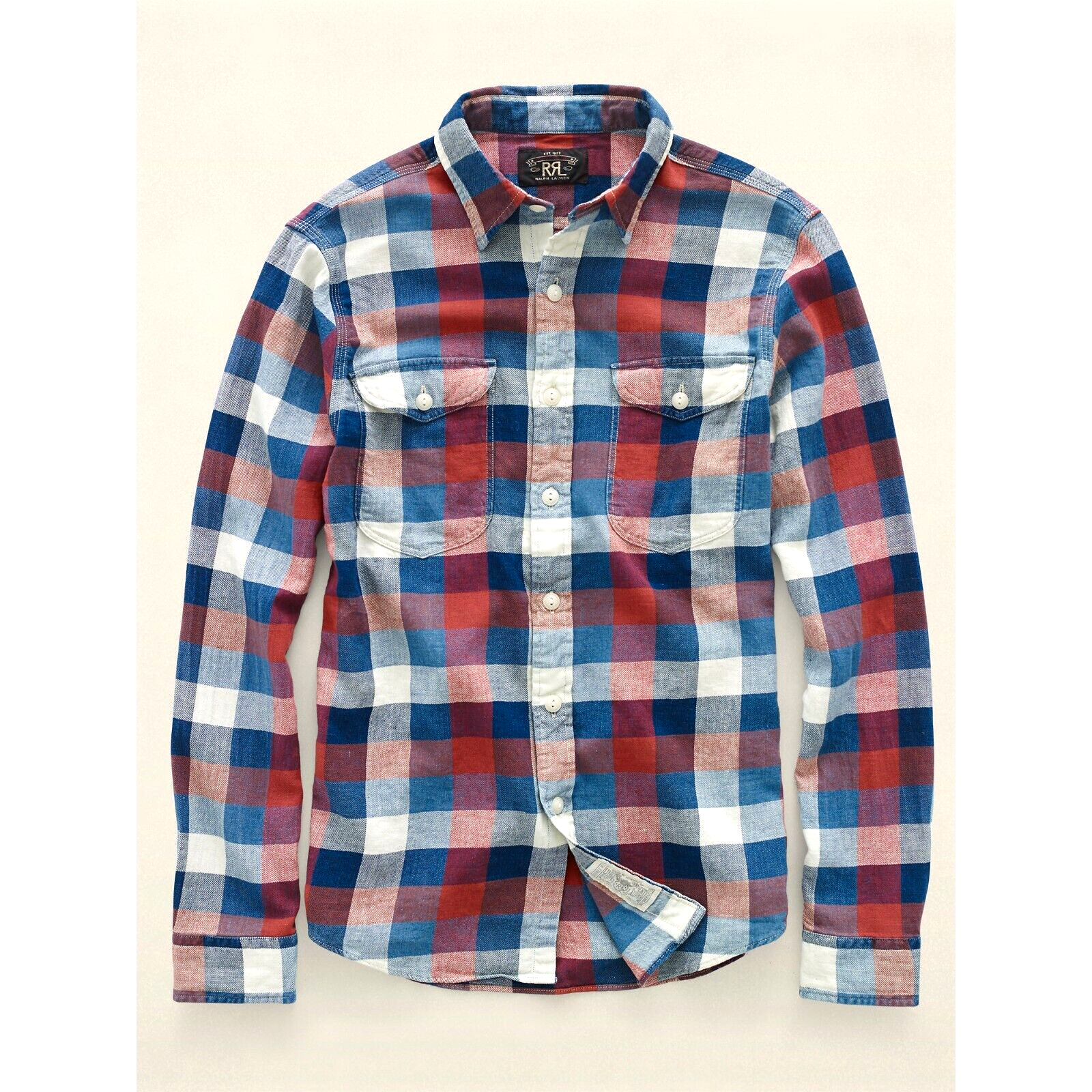 For sale is a new with defects RRL workshirts from previous years. All of these shirts are new and come to me from a large lot of factory seconds. The back tags on these shirts have been removed as well as the inside material tags to prevent resale. However, they are authentic RRL products and still contain other insignia to indicate they are RRL products. I have been selling RRL for over 10 years and have extensive knowledge of these products and their authenticity