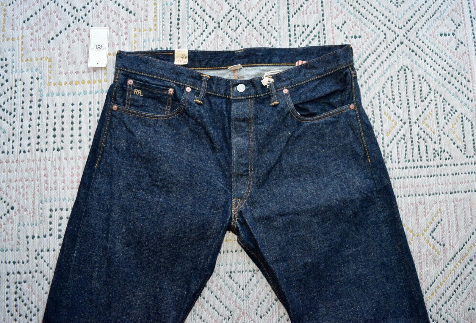 $450 RRL Double RL Dark Wash Denim Jeans Selvedge Slim East - West Men's 38 x 32