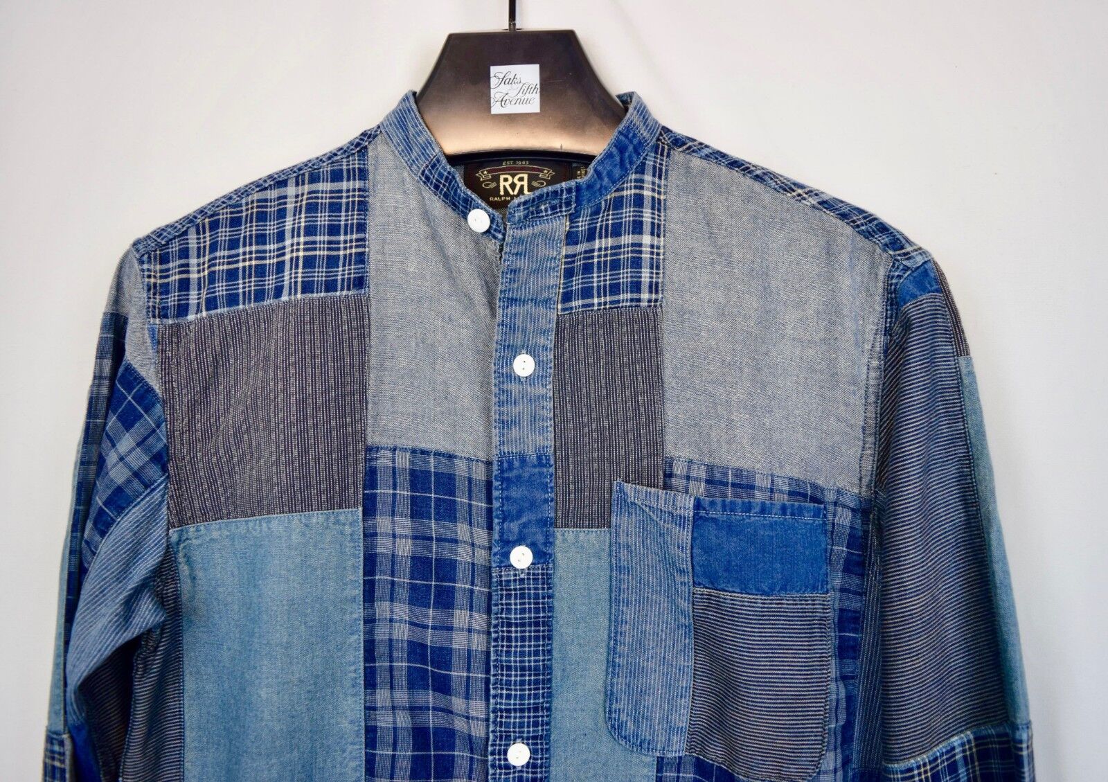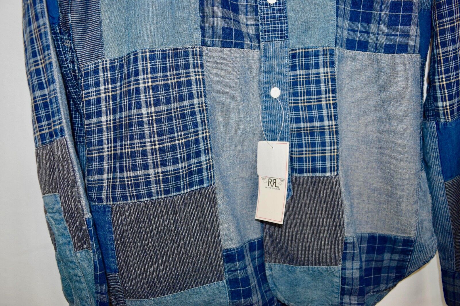 $580 RRL Ralph Lauren Patchwork Flannel Blue Shirt Indigo Plaid XS Extra-Small