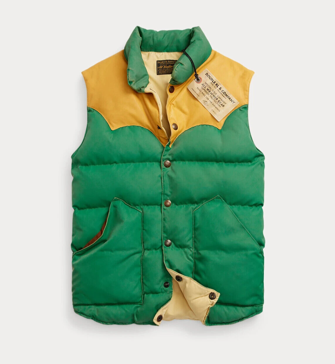 RRL Ralph Lauren 1940's Green Quilted Down Vest Jacket Puffer Coat Men's Large L