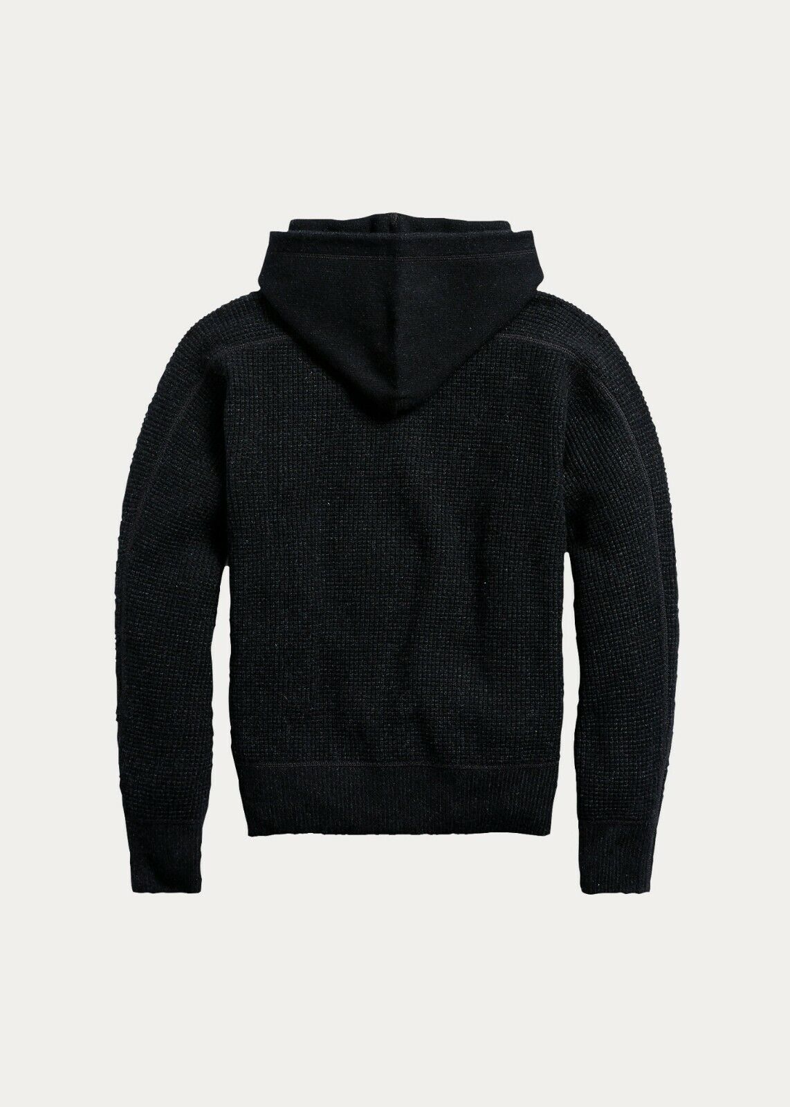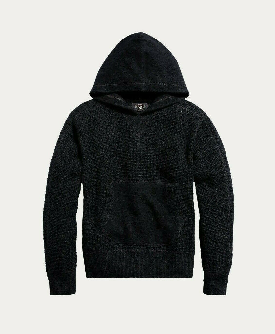 RRL Ralph Lauren Black Heather Waffle Knit Cashmere Hoodie Sweater Mens L Large
