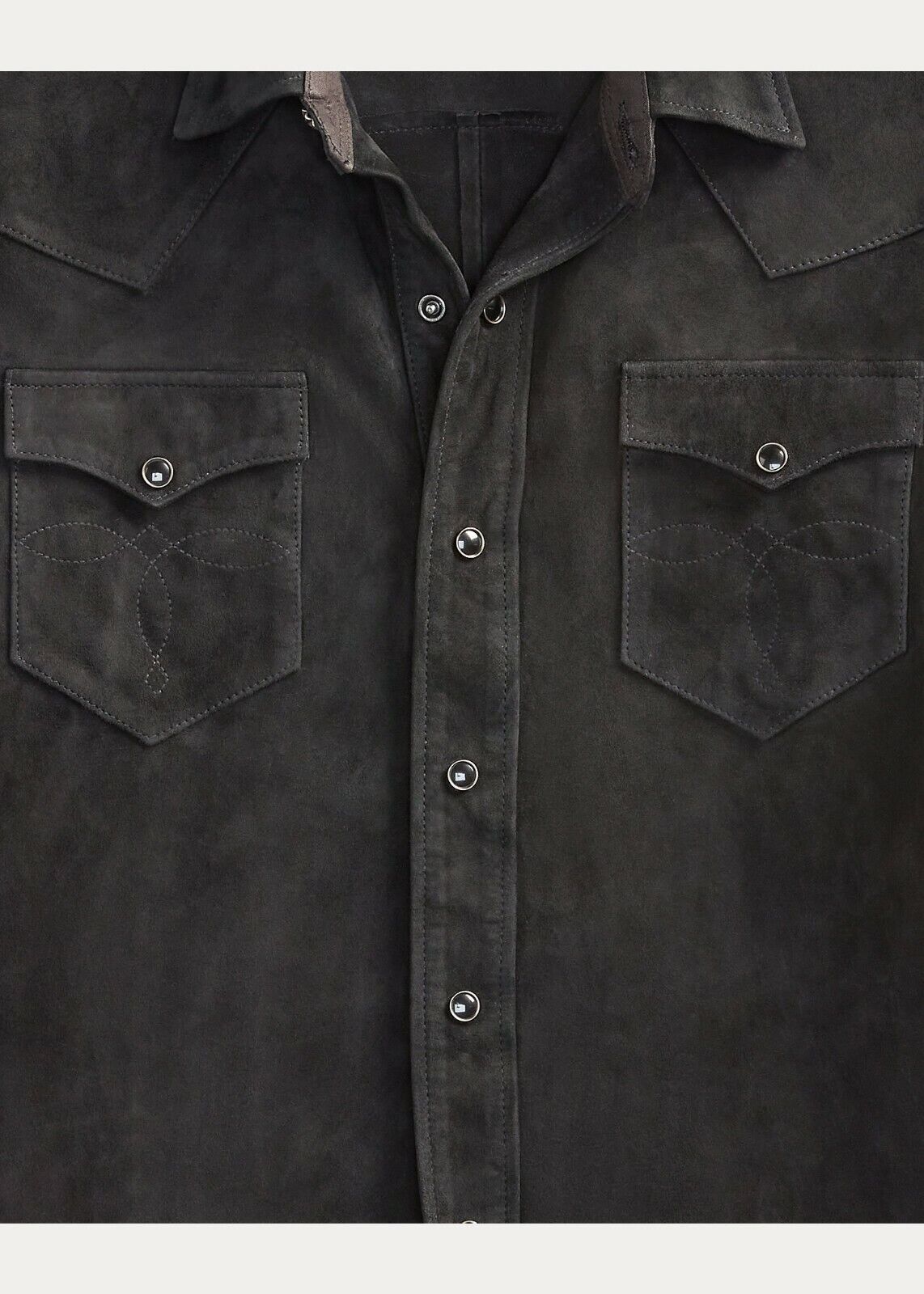 RRL Ralph Lauren Black Leather Western Suede Shirt Jacket Men's 2XL XXL