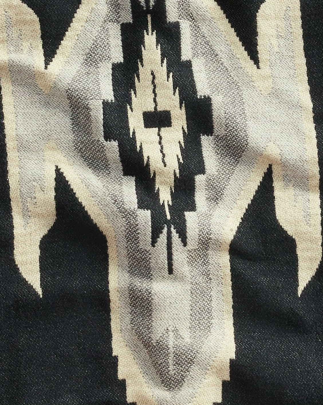 Made from brushed cotton jacquard. Woven with Southwestern-inspired geometric and striped motifs. Authentic runoff chain-stitched construction at the side seams, which is based on workshirts from '20s and '30s. Cotton muslin reinforcements at the interior. Vintage-inspired buttons. Washed for a timeworn look and feel.