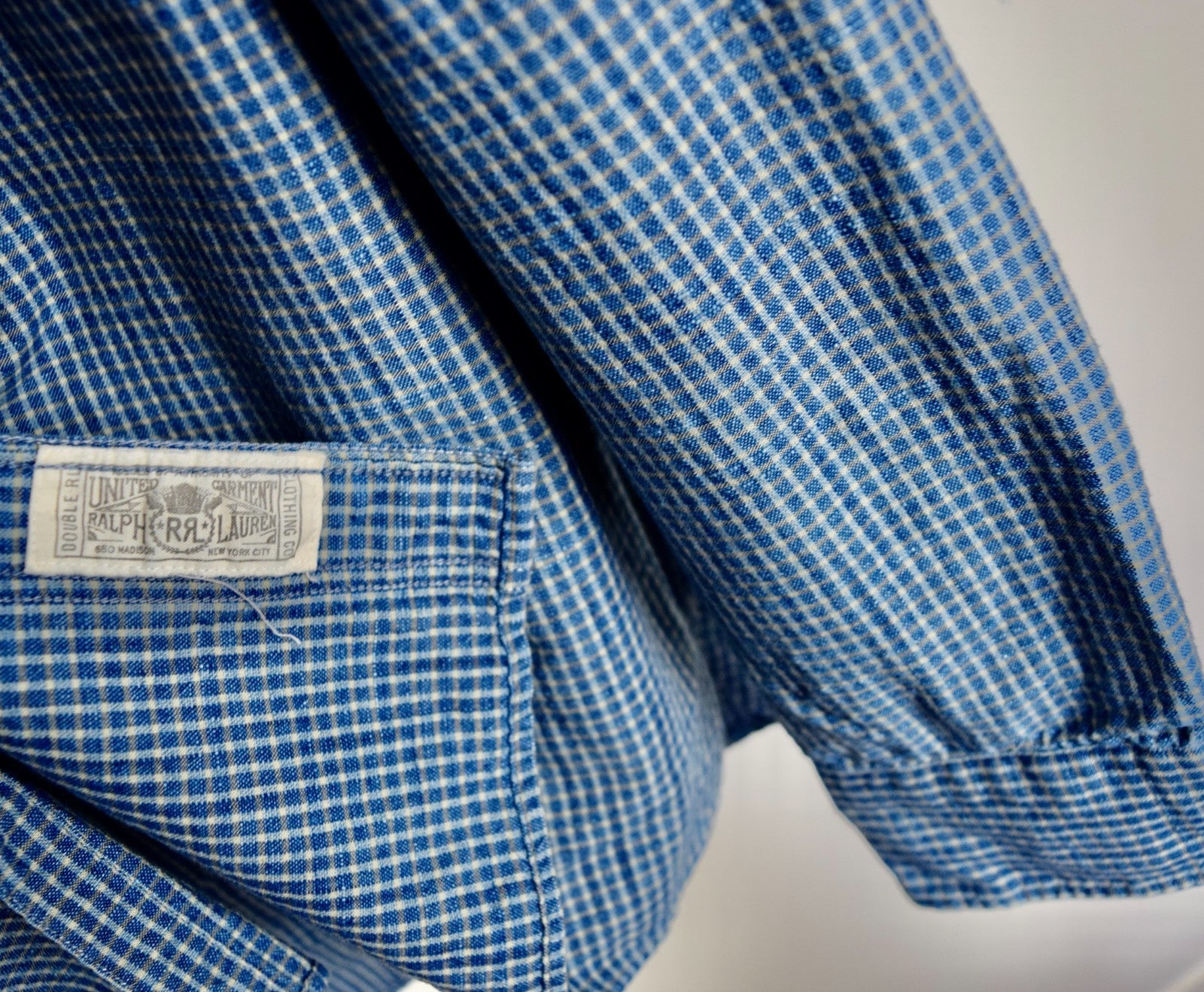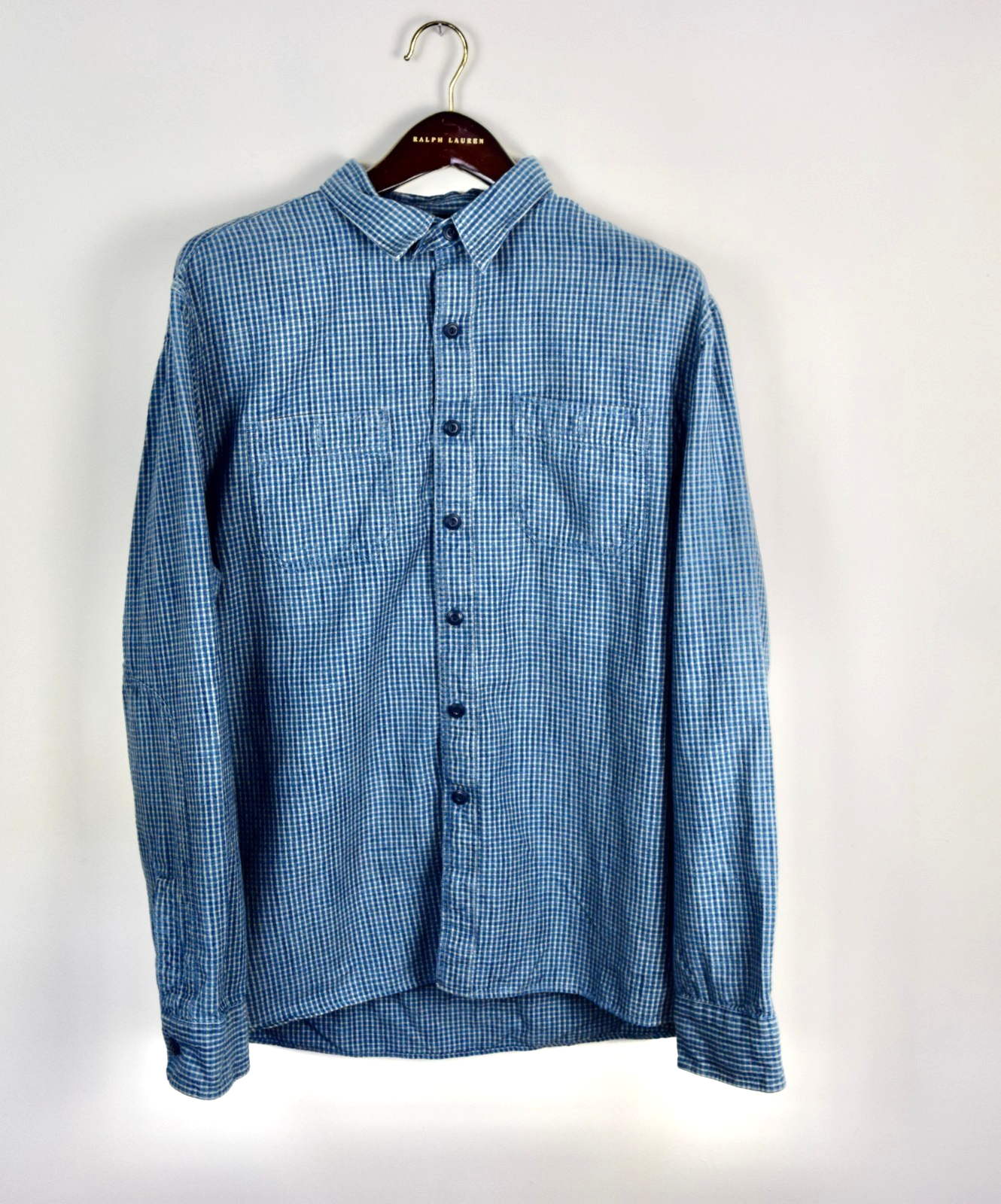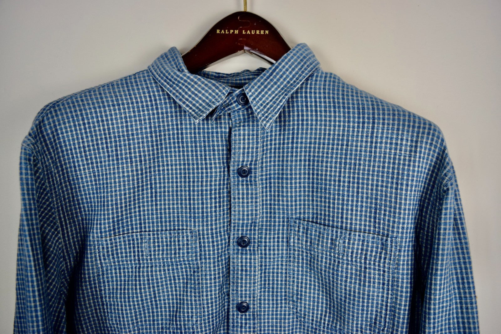 RRL Ralph Lauren Blue Check Chambray Workshirt Mens Shirt L/S Extra-Large XL
